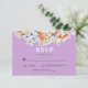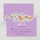 Elegante y moda tarjeta RSVP de boda con hermosas ramas de mandarina. Tarjeta botánica floral con flores y cítricos delicados de primavera. colores naranja, pastel y lila. Personaliza tu texto.