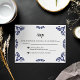 This Talavera Black Floral Minimalist Spanish Wedding RSVP Card design features a minimalist approach with delicate, symmetrical black floral motifs placed in each corner and along the edges. The small, leaf-like shapes create a sense of movement while maintaining an airy, open space in the center, allowing for ample text placement. The simplicity and elegance of the pattern evoke traditional Talavera tiles, giving the design a classic Mexican artisanal feel.
