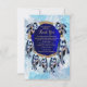 Un captador de ensueño que incluye el círculo redondo de bambú y abalorios rojas en la red con un tono de pájaro exótico-azul sobre un suave fondo de plumas de blues para un boda.