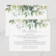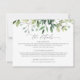 Elegante y romántica tarjeta de detalles de boda con verde de acuarela. Personalice con la información de RSVP de su boda en letra moderna y minimalista.