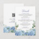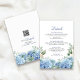 Nuestra tarjeta de detalles Blue Hydrangea es la manera perfecta de compartir información esencial con sus huéspedes. Con sus elegantes hortensias de acuarelas en tonos suaves, esta tarjeta de diseño elegante complementa su suite boda, proporcionando detalles del recinto, alojamiento o notas especiales de una manera elegante y coherente.