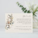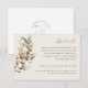 Sumérjase en los detalles de su celebración bohemia con esta tarjeta de detalles de acuarela bohemia y eucalipto. En la parte delantera hay un suave telón de fondo de algodón beige, adornado con un ramo rústico en el que se exhibe la belleza encantadora de los botones acuarelas y del eucalipto. La parte posterior tiene un monograma opcional.