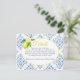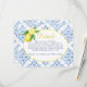 Envía información adicional para tu evento con esta hermosa tarjeta de detalles italianos de baldosas azules con limón. Con un estilo toscano de Positano, este diseño es perfecto para cualquier evento de primavera o verano.