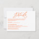 Esta hermosa tarjeta de detalles Boda presenta un elegante diseño de naranja caliente. Con esta vibrante y moderna combinación de colores rosados y naranjas. ¡Un divertido boda de verano! Compruebe la colección para ver más elementos coincidentes.