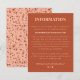 Esta tarjeta adicional de información para invitados a la boda tiene una tipografía inspirada en mediados de siglo y cajas de texto fáciles de personalizar para que pueda comunicarse con sus futuros bodas. Una paleta de colores de tonos desérticos inspirados en la crema, el rubor y la moda y la nueva y sencilla espalda con estampado de terrazo le da un toque de alegría.