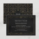 Diseño de marco ornamentado con elegancia vintage en color dorado sobre fondo negro desgastado. Patrón damasco con diseño de monograma en la parte posterior, moderno, elegante y clásico, perfecto para boda vintage, boda art déco todo el año. Color de fondo editable para que coincida con los colores de su tema de boda. Personalice su propia tarjeta de recepción para su conjunto de invitaciones de boda.