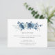 Una tarjeta de información sobre la recepción de bodas con un tema azul y una florida acuarela azul para la recepción de tu boda. puedes personalizar el texto y el color para que coincidan con tu tema boda.