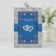 Esta romántica tarjeta de la recepción floral azul real y gris de la boda tiene la imagen de un par de corazones unidos sobre una cinta azul real y una imagen de arco que cruza el centro de la tarjeta. El fondo tiene un fondo azul real con los detalles de la recepción u otra información impresa en gris claro con un marco de desplazamiento plateado simulado que rodea la redacción. Hay un borde simulado de plata alrededor de toda la tarjeta en la parte delantera y trasera. Si necesita algún elemento adicional coincidente, envíe su solicitud a niteowlstudio@gmail.com o utilice la función de chat Zazzle para ponerse en contacto.