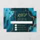 Tarjeta De Confirmación De Asistencia Teal Blue and Gold Agate Marble