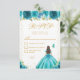 Tarjeta De Confirmación De Asistencia Teal Floral Brunette Hair Princess Sweet Sixteen