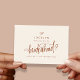 Esta hermosa tarjeta de proposición de dama de honor cuenta con una cálida paleta de color terracota y crema, con "dama de honor" mostrada en un elegante guión escrito a mano. Personalízalo con el nombre de tu amigo por un toque sincero. En la parte inferior, el mensaje dice: "No puedo decir "lo hago sin ti", o puedes personalizar con tu propia frase para hacerlo aún más especial. Una manera atemporal y reflexiva de pedir a tus seres queridos que estén a tu lado en tu gran día. © Kimbellished, LLC