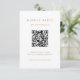 Esta minimalista y elegante tarjeta de respuesta de boda de código QR escaneado presenta texto de barro terracota sobre un fondo blanco limpio, para un aspecto sencillo y elegante. Sus huéspedes pueden escanear fácilmente el código para visitar el sitio web de su boda y rsvp en línea.