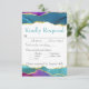 Tarjeta de respuesta de boda con elección de comida y fuente teal de acuarela abstracta con Tinta Fuchsia Rosa Teal Dorado
