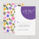 Elementos: coronas florales tropicales que rodean sus nombres y cola. Los nombres están en un guión caprichoso, mientras que los detalles están en un tipo de letra sans serif moderno. Colores: púrpura, rosa, amarillo, verde, orquídea, ciruela, magenta, fuschia, limón, Temas: luminoso, tropical, playa, destino, romántico, bohemio, alegre, moderno, casual. Colección: Vibrante Casual Magenta Violeta Boda Amarillo Tipo de producto: RSVP