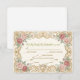 Transport your guests to a fairytale romance with this vintage-inspired response card, featuring antique details and a formal request for their attendance.This design features a sophisticated flat-printed simulation of an antique aesthetic. The background is a printed effect resembling aged cream parchment paper, providing a warm, nostalgic base. Framing the text is an elaborate, symmetrical baroque scrollwork border in a printed faux gold tone, accented by watercolor illustrations of blush pink roses and soft sage green leafy vines. A delicate cherub illustration anchors the bottom center, reinforcing the classic Victorian influence. The typography combines an elegant calligraphy script for names with a traditional serif font for the details.This is a flat printed image with a faux gold foil and parchment texture effect, not actual raised foil or vellum material.