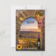 Una elegante y romántica tarjeta RSVP de boda con dos copas de vino con girasol, botella y uvas en un arco romano con linterna, con vistas a un romántico paisaje de viñedos. Esta tarjeta RSVP forma parte de una colección de bodas, bodegas o viñedos sobre la temática del vino.