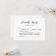 Nuestra tarjeta de respuesta para la boda es la adición perfecta para el tema de tu boda contemporánea. Con su diseño simple pero elegante, esta tarjeta seguramente impresionará a tus invitados y establecerá el tono para tu día especial. Las palabras "Kindly Reply" están escritas en una hermosa y elegante letra cursiva, invitando a tus invitados a responder con prontitud a tu invitación de boda. Creemos que cada detalle cuenta, y este encantador toque asegurará que tus invitados se sientan apreciados y valorados. Proporciona a tus invitados la oportunidad de seleccionar sus opciones de comida preferidas. Esta característica conveniente y organizada te ahorrará tiempo y asegurará que las necesidades dietéticas de todos sean atendidas. Nuestra tarjeta encarna la esencia del estilo moderno y el minimalismo. Sus fuentes clásicas y paleta de colores personalizable se mezclarán sin esfuerzo con el tema de tu boda, asegurando una apariencia cohesiva y sofisticada. Tu boda es una celebración de tu historia de amor única, y nuestra tarjeta de respuesta para la boda reflejará la elegancia y el estilo contemporáneo que deseas. Entonces, ¿qué estás esperando? Es hora de causar una gran impresión y asegurar un proceso de planificación sin contratiempos para tu día especial. Ordena ahora y comienza tu in