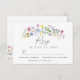 Completa tu suite de boda con esta encantadora tarjeta de confirmación de acuarela con flores silvestres, que presenta un delicado ramo de flores pintadas a mano en rosa, púrpura, azul y amarillo. Los suaves acentos florales enmarcan los detalles de tu respuesta en un diseño limpio y moderno que es fácil de rellenar para tus invitados. Ideal para bodas rústicas, boho o de jardín, esta tarjeta coordina perfectamente con la invitación coincidente y la colección completa de flores silvestres.