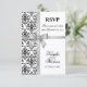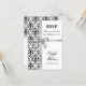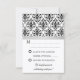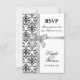 © Socialite Designs. Tarjeta de confirmación de invitación de boda elegante que incorpora damasco y una cinta cruzada impresa con lazo. Por favor, póngase en contacto con Socialite Designs si desea una combinación de colores diferente, ayuda con la personalización u otros productos de boda creados con este diseño. TENGA EN CUENTA QUE LA CINTA ES UNA IMAGEN Y ESTÁ IMPRESA EN LA INVITACIÓN.