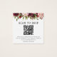 Tarjeta de confirmación de boda con diseño floral en acuarela rústica en tonos burdeos y rubor, y un código QR que dirige a los invitados a su sitio web de boda donde podrán responder en línea. La parte trasera de esta tarjeta cuadrada presenta una foto que puede eliminar o reemplazar con la suya.