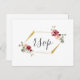 Nuestro diseño de tarjeta de confirmación de boda botánica presenta un centro geométrico dorado (no real) con delicadas flores de Burdeos y eucalipto que combina acuarela. Perfecto para bodas de otoño y bodas botánicas.