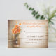 hermosa confirmación de boda rústica - tarjetas de respuesta de boda con fondo de madera desgastada y frasco de Mason con flores de color naranja. Sugiero un hermoso papel con textura de lino para este diseño.