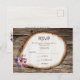 Tarjeta de confirmación de boda con flores en tocón de árbol