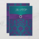 Esta dramática tarjeta de confirmación de boda de damasco púrpura y azul turquesa tiene una cinta púrpura IMPRIMIDA y un broche de joyas de diamante IMPRIMIDO que coincide con la invitación de boda que se muestra a continuación. La elección del papel es personalizable. Si necesita otros artículos coincidentes, por favor envíe un correo electrónico a niteowlstudio@gmail.com.