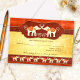 Tarjeta de RSVP para invitaciones coincidentes con dos elefantes blancos enamorados, animados por sus familias y tribu. El fondo es una combinación elegante de ocre y burdeos con elementos metálicos. También es posible eliminar la imagen del reverso y utilizar su propia imagen o elegir un color personalizado. Este diseño está inspirado en el arte indio.