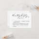 ¡Presentamos nuestra tarjeta de respuesta de boda elegante y minimalista! Esta invitación elegante complementa perfectamente cualquier tema de boda contemporáneo, aportando un toque de sofisticación a su día especial. Nuestra tarjeta de respuesta diseñada con belleza presenta la frase "Se ruega responder" escrita en una fuente de escritura impresionante. Agrega un toque de refinamiento y belleza clásica a sus invitaciones, lo que hace que sea un placer para que sus invitados respondan. Organice una experiencia gastronómica inolvidable para su boda permitiendo que sus invitados seleccionen sus preferencias. Con nuestra tarjeta de respuesta, puede incluir una sección de opciones de menú, lo que permite a sus seres queridos indicar sus opciones dietéticas particulares, asegurando la satisfacción de todos. Solo asegúrese de incluir una dirección de devolución preimpresa en el sobre para que sea simple y conveniente para que sus invitados respondan. Capture el encanto contemporáneo de su boda con nuestra tarjeta de respuesta elegante. ¡Ordene ahora y deje que agreguemos un toque de elegancia refinada a su gran día!