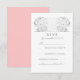 Tarjetas de respuesta de boda con flores plateadas con frente plateado y blanco y parte posterior rosa.