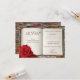 Una tarjeta de confirmación de boda romántica con un libro y una rosa roja sobre un fondo de pared de ladrillo. Esta tarjeta es parte de una colección de bodas con un tema de biblioteca o amantes de los libros.