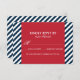 Invitación moderna de confirmación de asistencia roja, blanca y azul. Tiene un fondo de patrón de rayas diagonales blancas y azules y un marco rojo. Esta confirmación de asistencia es perfecta para fiestas temáticas náuticas y oceánicas.