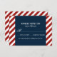 Tarjeta de respuesta con rayas diagonales rojas y blancas. Simple pero moderna, perfecta para bodas con tema náutico.