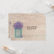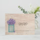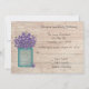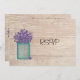 Esta tarjeta de confirmación de boda en tarro de mason azul con violetas presenta mi arte dibujado a mano. Busque invitaciones de boda y anuncios de 'Save The Date' coincidentes.