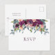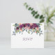 Flores elegantes que incluyen flores pintadas a mano, ciruela morada y rosadas en un encabezado de guirnalda de follaje con plantillas de texto de ciruela morada proporcionadas.