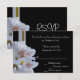 tarjeta de confirmación de flores de rododendro blancas bonitas. Para bodas de primavera, verano, fiestas. Arte fotográfico floral. Fondo negro.