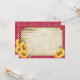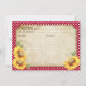 Tarjeta de receta rústica de cuadros rojos y girasoles para una boda temática de picnic western campestre.
