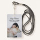 Una insignia de nombre de consejero de adopción mascota para empleados o voluntarios, con un perro y consejero. Reemplace esta foto de ejemplo con la suya propia. Perfecto para ferias de mascotas y eventos de adopción.