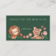 Tarjeta de consejo de Baby Shower Jungle Animal con ilustraciones de león y tigre. Animales de safari bonitos con flores tropicales coloridas sobre un fondo verde forestal. Perfecto para los niños con temática zoológica, fiesta o ducha tropical para bebés. La parte posterior es un patrón floral que combina.