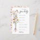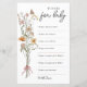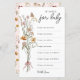 ¿Estás buscando un hermoso tema de la ducha para una futura mamita? Mira esta Tarjeta de Consejos para Bebés de Wildflower Baby Shower . Cuenta con un bonito ramo de flores acuáticas sobre un fondo blanco. En la parte trasera, se encuentra un bonito patrón floral con un fondo rosado. Pero puede cambiar el color de fondo en la herramienta de diseño. Puede agregar sus propios detalles muy fácilmente utilizando los campos de plantilla. Tenemos una colección completa de artículos a juego y suministros de fiesta con este maravilloso tema de la flor silvestre con diferentes opciones para las invitaciones. Puede verlos debajo del producto (Haga clic en el enlace debajo del encabezado "Otros productos de esta colección"). ¡Feliz personalización y un gran fiesta!