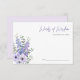 "Tarjeta de consejo de ducha con guión de flores moradas" es una encantadora adición a cualquier ducha de novia. Con delicadas flores moradas y elegante letra de guión, esta tarjeta de consejo ofrece una hermosa manera para que los invitados compartan sus buenos deseos y sabiduría con la futura novia. Cada tarjeta está diseñada para captar mensajes sentidos y consejos reflexivos, lo que la convierte en un querido placer para la novia. Añada un toque de elegancia y sentimiento a la celebración con esta preciosa tarjeta de consejo.