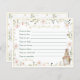 Esta ducha neutra de género para bebés Well Wishes For Baby Advice Card/Game cuenta con delicados flores silvestres suaves entrelazadas con un conejo de bebés de Beatrix Potter en tonos suaves de agua. Esta tarjeta no usa Relieve metalizado real y en su lugar usa color dorado para borde y texto. Puede rellenar fácilmente la plantilla con sus propios detalles o seguir editando para cambiar el estilo de letra, el tamaño, el color y la ubicación si lo desea. Vea los artículos a juego en la colección Baby Shower Gold Floral Baby Bunny de mi tienda.
