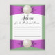 Solicite consejo a sus amigos y familia con estilo con algunas preciosas tarjetas de consejo personalizado. Esta tarjeta de notas con un encantador diseño de lazo perla y púrpura lila sobre un verde sabio sereno puede ser entregada a sus huéspedes en su día especial. Aunque esta tarjeta de consejo sería un toque maravilloso para cualquier época del año, los colores florales de lila y salvia y la perla brillante encajarían maravillosamente en una boda de primavera. Los nombres de la novia y del novio se pueden mostrar elegantemente en la parte delantera de la tarjeta. Asegúrese de incluir también monogramas de la novia y el novio en la parte posterior de la tarjeta.