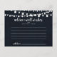 Esta rústica tarjeta de consejo boda de luces de cuerda es perfecta para un boda moderno. El diseño presenta bonitas luces de cuerda pintadas a mano en un fondo azul oscuro. Estas tarjetas son perfectas para un boda, una ducha de novia, una ducha de bebé, una fiesta de graduación y más. Personalice las tarjetas con los nombres de la novia y el novio, los futuros padres o los graduados.