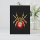 Araña mecánica, de vapor punk con oro, engranajes de latón y una lámpara de vidrio roja sobre un fondo negro. Estilo Steampunk.