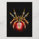 Araña mecánica, de vapor punk con oro, engranajes de latón y una lámpara de vidrio roja sobre un fondo negro. Estilo Steampunk.
