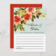 Elegante carta de consejos y deseos de boda con rosas de color rojo, follaje verde sobre un fondo verde + menta.