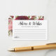 Tarjetas de consejos de boda rústicas elegantes con un fondo blanco liso que se puede cambiar a cualquier color, líneas para escribir sus palabras de sabiduría y una variedad de flores acuarelas de flores de color rojo marsala, borgoña y rosa en la parte posterior.