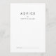 Esta tarjeta de asesoramiento boda de tipografía de moda es perfecta para un boda moderno y puede utilizarse para cualquier evento. El diseño es sencillo y presenta una tipografía minimalista clásica en blanco y negro con un toque rústico de boho. Personalizable de cualquier color. Mantenga el diseño minimalista y elegante, tal como está, o lo personalice añadiendo sus propios gráficos y obras de arte. Estas tarjetas de consejo pueden utilizarse como alternativa de libro de visitas para una recepción de boda, una ducha de novia, una ducha de bebé o una fiesta de graduación. Personalice la tarjeta con los nombres de la novia y el novio, la futura o el graduado.